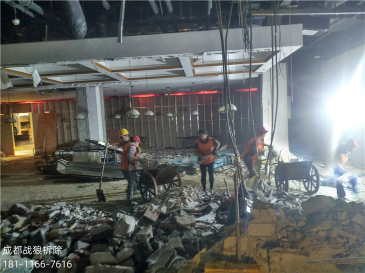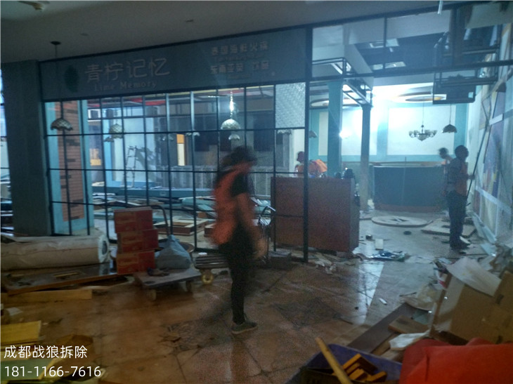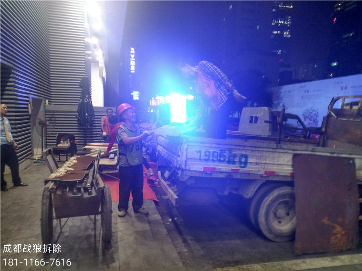 因?yàn)樯虉鰻I業(yè)場所的特屬要求,拆除工作時(shí)間只能安排在晚上進(jìn)行。