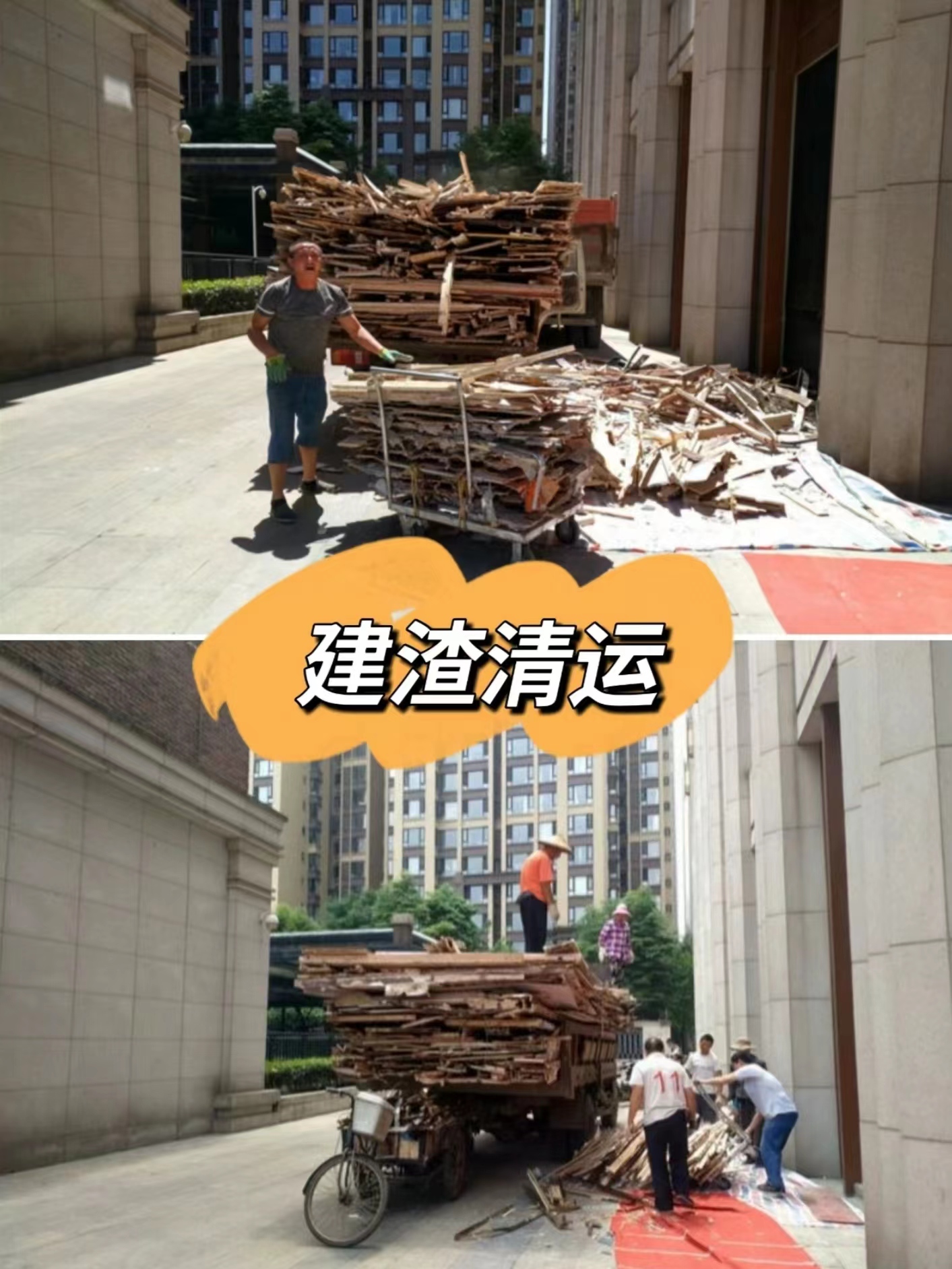 在我們施工期間,還連續(xù)下了幾天雨,由于建渣搬運(yùn)是在室外,工人師傅們還是堅(jiān)持穿雨衣搬運(yùn),避免耽誤工期,辛苦了!
